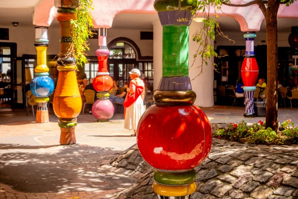 Hundertwasser letztes Bauwerk ist ein begreifbares Paradies - ein Paradies, in dem man nicht nur wohnen, arbeiten, einkaufen, staunen und genießen, sondern auch feiern, tagen und übernachten kann. Mehr zum Bauprojekt und zum Künster Friedensreich Hundertwasser ertahren Sie in den täglichen Führungen sowie dem Manifest zum Bauwerk.